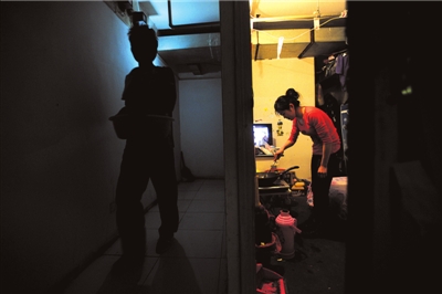 22歲的小石在木樨園附近的百榮世貿(mào)商城做導(dǎo)購員,未婚夫小郭是運(yùn)輸公司的司機(jī),兩人住在商城兩公里外一小區(qū)的一間地下室。雖然是一個(gè)僅有8平方米、不帶廚衛(wèi)的“開間”,但月租才450元,離工作地點(diǎn)不遠(yuǎn),對(duì)付一下,家的功能還算完整。