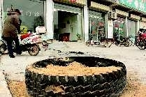 現(xiàn)場的陳老漢說,9點40分許,他突然看到一輛輪胎冒煙的大貨車由北向南駛來,司機一剎車,一聲巨響的同時,燃燒著的車胎瞬間飛了出去,砸在墻上又彈回來,一個20斤重變了形的鋼圈飛進王麗店里。