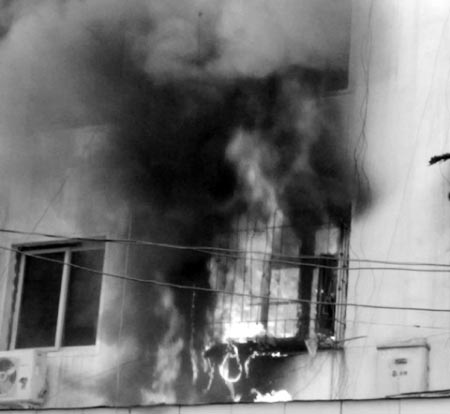 僅幾分鐘的工夫,火苗從窗戶躥出,窗戶也燃燒起來。