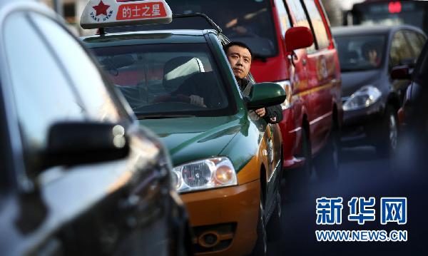 12月10日上午10時30分許,出租車司機在擁堵的車流中焦急地等待。新華社記者 萬象 攝