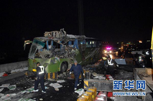 圖表:杭州機(jī)場(chǎng)高速兩大巴相撞造成重大傷亡 新華社發(fā)