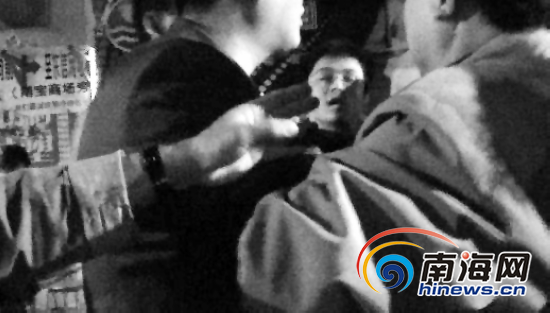 看到執(zhí)法人員沒有將所拍的照片、DV刪除,而且還在繼續(xù)拍攝,另一名客人抓了一下執(zhí)法人員,幾位執(zhí)法人員上前阻攔。這時,之前一直要求執(zhí)法人員刪除照片的那名客人也圍上來,雙方爭執(zhí)不下。為避免事態(tài)進(jìn)一步惡化,執(zhí)法人員立即報警。