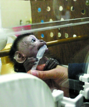 “剛出生時,身子瘦小得不得了,加上母親不愿哺乳,境況相當(dāng)凄慘。”全程負(fù)責(zé)照顧飼養(yǎng)獅尾猴寶寶的飼養(yǎng)員楊姨告訴記者,上月3日清晨5時,廣州動物園內(nèi)唯一一對獅尾猴順利誕下寶寶,但由于獅尾猴初為人母,看到新生命的來臨也一時不知如何是好,任憑寶寶晾在一邊不敢靠近,更不愿對其進(jìn)行哺乳。