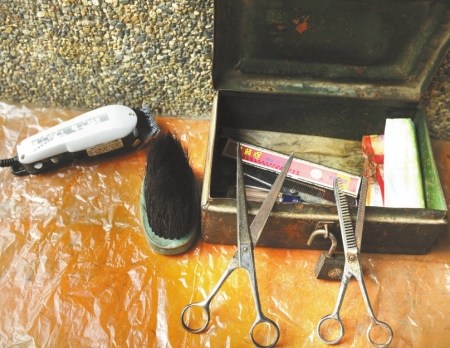劉緒瓊的理發(fā)攤就擺在自家單元樓下,由幾張凳子、一張桌子和一個舊鐵盒組成。舊鐵盒里裝著理發(fā)工具,這個鐵盒從她做理發(fā)師開始,跟隨了她29年。劉緒瓊服務(wù)的收費(fèi)標(biāo)準(zhǔn)是:女士剪發(fā)1元,男士剪發(fā)刮胡子1.5元。有些老人行動不便,她還會主動上門服務(wù)。