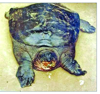 一個(gè)多月前,在江蘇興化做甲魚生意的房增祥,收購(gòu)到一只84斤重的特大甲魚。興化市旅游局得知消息后,以15萬(wàn)的高價(jià)從房增祥手中購(gòu)得,準(zhǔn)備放置在當(dāng)?shù)貫踅硎帩竦毓珗@飼養(yǎng),增加該景點(diǎn)的“看點(diǎn)”。然而不幸的是,大甲魚一周后死亡。本報(bào)曾分別于11月25日、12月3日以《這個(gè)大甲魚大得不像話》、《84斤大甲魚死了?》為題專門進(jìn)行報(bào)道。
