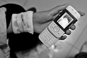 阿玲受傷的手緊握手機(jī),手機(jī)屏幕顯示的是她整容前的照片。陳侄輝攝