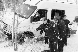 年12月28日,暴雪襲向山東威海,路面很快就積了厚厚的一層雪,一輛載有1000余萬元巨款的運(yùn)鈔車突然沖向了路邊,把10余米的鋼質(zhì)防護(hù)欄撞斷后,又撞斷了一片防護(hù)林,側(cè)翻到了路基底下,當(dāng)時(shí),運(yùn)鈔車的車門被撞壞,5名駕乘押護(hù)人員被困車中,車上的巨款隨時(shí)可能出現(xiàn)危險(xiǎn)……