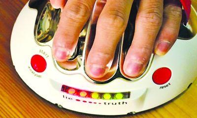 2、儀器上有5個(gè)燈,根據(jù)被測(cè)試人的回答燈會(huì)亮,如果標(biāo)示“l(fā)ie”(撒謊)的燈都亮了,被測(cè)試人將遭電擊。反之標(biāo)示“truth”(真實(shí))的燈亮的話,被測(cè)試人就平安過(guò)關(guān)。