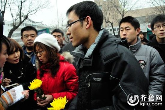 到事發(fā)現(xiàn)場(chǎng)悼念的大學(xué)生