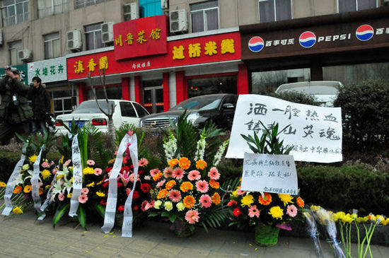 1月4日,泰安市發(fā)生了震驚全國(guó)的“1.04”持槍殺人案,2名民警和一名協(xié)勤在抓捕犯罪嫌疑人過程中壯烈犧牲。今天,泰安各界群眾自發(fā)來到案發(fā)現(xiàn)場(chǎng),悼念犧牲的公安民警和協(xié)勤人員。