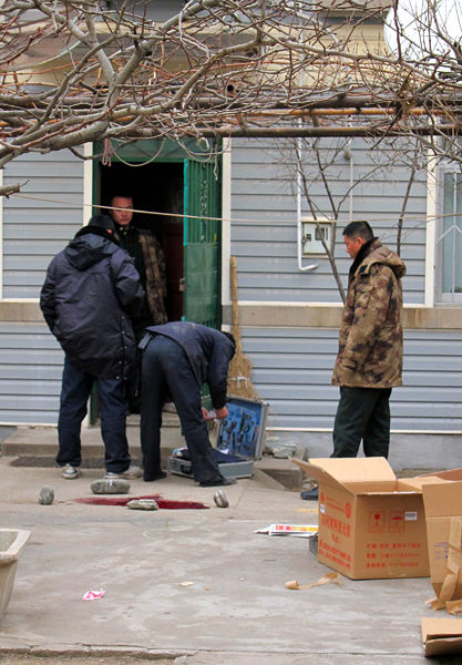 1月5日,公安人員在“1·04”持槍殺人案第一案發(fā)現(xiàn)場(chǎng)勘察。新華社記者朱崢攝
