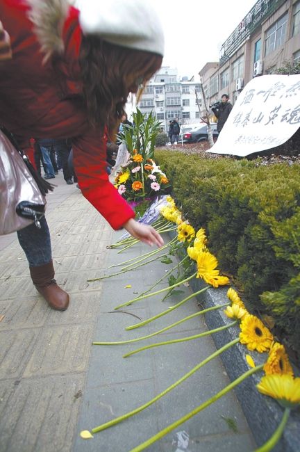 山東農(nóng)業(yè)大學(xué)、泰山醫(yī)學(xué)院的學(xué)生代表,也紛紛準(zhǔn)備了鮮花、自制的紙花,以及他們親自書寫的寫有“人民英雄,一路走好”、“愿逝去的英魂安息”等字樣的挽聯(lián)。