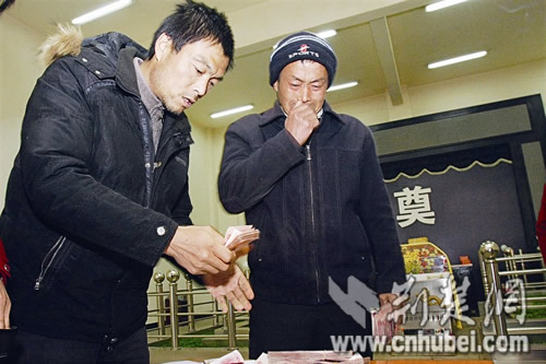 據(jù)了解,昨日發(fā)放的近8萬元工錢中,6萬元是親屬們湊的,另外2萬元是向親友借的。