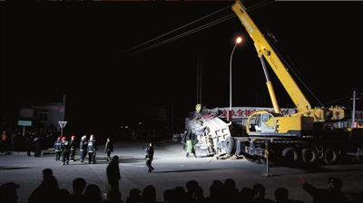 晚10點(diǎn)左右,大貨車(chē)被吊車(chē)扶正,其間汽修店出現(xiàn)輕微的震動(dòng)。隨后不久,消防員和急救人員從小轎車(chē)內(nèi)相繼抬出4名20歲到30歲左右的男子。經(jīng)檢查,4人均已死亡。