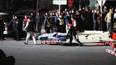 轎車(chē)內(nèi)一名死者的遺體被運(yùn)離現(xiàn)場(chǎng)。