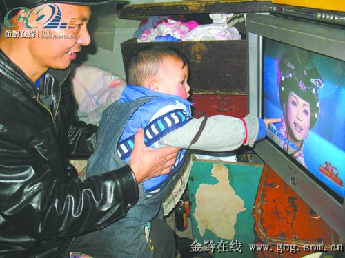主人劉順祥將正在睡覺的小男孩抱了起來,由于還未睡醒,小男孩開始哭鬧。劉順祥笑著對(duì)記者說:“沒事,有辦法的!闭f著便將李玉剛的演唱碟片放入影碟機(jī)中。