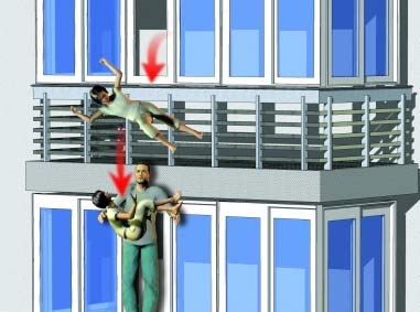 5樓墜下一團(tuán)東西像棉花胎 4樓師傅伸手一接抱住個(gè)墜樓女童