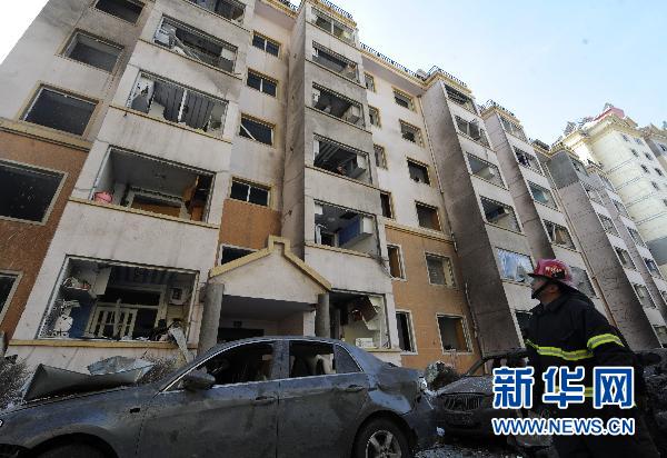 爆炸產(chǎn)生的巨大氣流對周圍十幾棟居民樓產(chǎn)生了破壞性沖擊,距離爆炸點(diǎn)100多米外的一棟20多層居民樓的頂樓窗戶也被震碎,十幾棟大樓幾乎沒有完整的窗戶。小區(qū)中除了嘈雜的人聲,就是樓上居民清理碎玻璃的聲音。