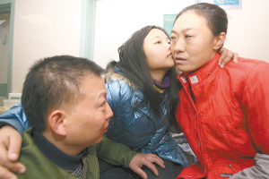 昨天,新橋醫(yī)院,張怡親吻著養(yǎng)育了她13年的媽媽。記者 羅偉 攝