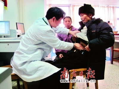 圖為醫(yī)生給重新住院的駱新茍檢查身體。