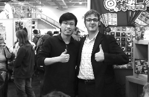 黃愷(左)參加德國桌游展。