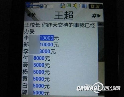緊接著的圖片則是發(fā)給“王超”的回信:“王校長(zhǎng),你昨天交待的事我已經(jīng)辦妥:李隊(duì)長(zhǎng)10000元;鄭××10000元;李××8000元……大廳內(nèi)的一般人員都按照每人500元。錢我都是親手送到的,他們互相都不知道……”