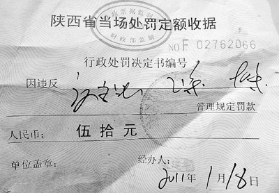 一位司機(jī)拿著一張50元的罰款單(圖③)