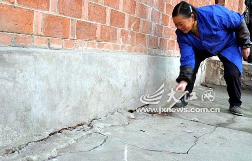 方玉忠拿一根鋼釬向地面上一插,鋼釬立即穿透水泥地面,插入地下一米多深。“你看,地下完全是空的!”方玉忠說(shuō)。方玉忠還告訴記者,幾年前,他家房前一口水井的井臺(tái)要比地面高出十幾厘米,后來(lái)慢慢沉降,到現(xiàn)在已下沉得比地面還低了。