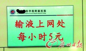 記者昨日致電該醫(yī)院辦公室了解情況。該醫(yī)院辦公室張小姐向記者證實,輸液上網(wǎng)5元/小