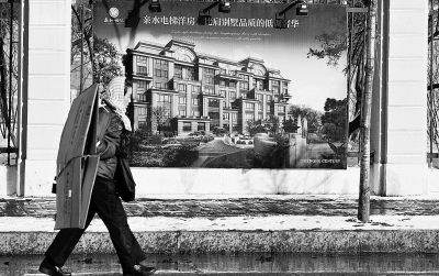 2月19日,一名行人從一樓盤宣傳廣告板前走過。2月18日,哈爾濱市政府正式下發(fā)《關(guān)于進一步做好哈爾濱市房地產(chǎn)市場調(diào)控工作有關(guān)問題的通知》,《通知》規(guī)定,擁有兩套住房的哈爾濱市家庭將不能再買房。新華社記者 王建威 攝