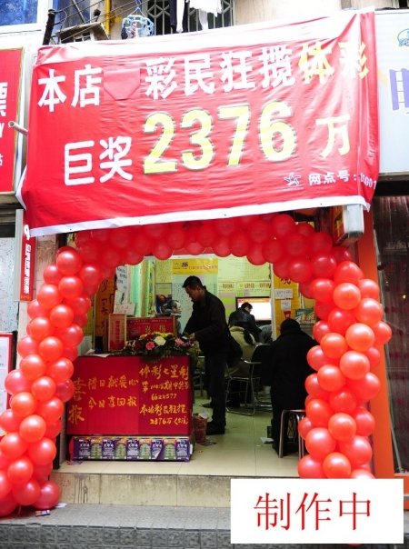 彩票銷售點(diǎn)掛起大紅橫幅迎巨獎(jiǎng)