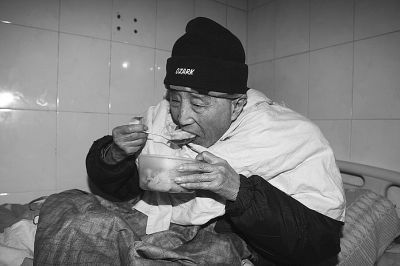 “您在生活上還有什么要求嗎?給您配個輪椅,需要嗎?”記者在紙上寫下這樣的問題!安灰。花國家的錢!眲⑵疴D顫抖地寫道。