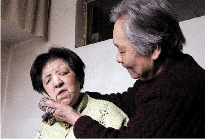 昨日上午,住在紅旗路34號(hào)院的80歲老人姚玉瑩像往常一樣,幫56歲的女兒李燕平梳洗。這樣的動(dòng)作,老人已經(jīng)重復(fù)了56年。