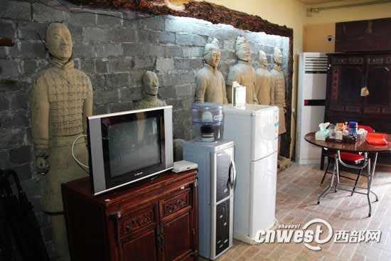 看過兵馬俑的游客無不贊其氣勢宏偉,可讓你和他們在一起睡覺,你敢嗎?網(wǎng)友“閱人如麻”在西部網(wǎng)論壇發(fā)帖稱,西安出現(xiàn)了一家“兵馬俑賓館”,這家賓館以兵馬俑造型為主題,目的是讓游客體驗秦文化,但賓館老板也向記者坦言,曾有不少客人被房間內(nèi)另類的裝飾風(fēng)格嚇跑過。