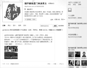 近日,這種“隨手拍”的微博相親活動(dòng)在網(wǎng)絡(luò)上興起。(圖片來(lái)源:廈門(mén)日?qǐng)?bào))