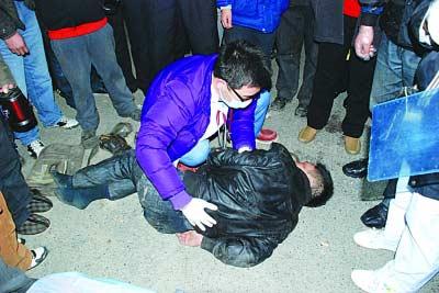 醫(yī)護(hù)人員在救治跳窗受傷小偷。