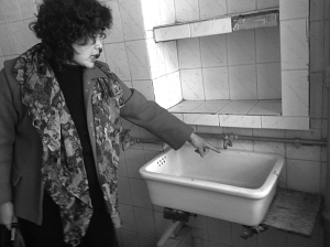 “這個(gè)房子沒有水也不是一天兩天了,當(dāng)初的開發(fā)商已經(jīng)都沒影了,也沒有走正式的供水所需辦理的手續(xù)。只是當(dāng)初從自來水的主管道上,挖了個(gè)口子,引到了各家各戶,后來被自來水公司的稽查大隊(duì)發(fā)現(xiàn)后,就被斷了水。”臧女士告訴記者,平時(shí)家里只有一點(diǎn)點(diǎn)水流,居住起來非常不方便,“本來這是單位分給老人的福利房,現(xiàn)在這哪是福利啊,因?yàn)橛盟槐悖蜎]敢讓老人在這住過!