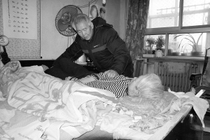 “照顧病人還要細(xì)心,病人最怕長褥瘡,一旦長了褥瘡,傷口潰爛難愈,極易感染。平躺一會兒,側(cè)著躺,三面倒,看哪面皮膚發(fā)紅,就少躺一會兒。夏天,胯骨部位還要經(jīng)常用酒精消炎,平均倆小時給她翻一次身……”多年的護(hù)理經(jīng)歷,讓劉俊明成了“專家”。讓他欣慰的是,十幾年來老伴沒有長過一個褥瘡,也沒有感冒過一次。
