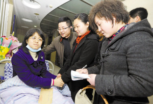 昨天下午3點(diǎn)多,當(dāng)初渝大新聞學(xué)院廣電2班的很多同學(xué),趕到醫(yī)院看望江麗華,并積極地聯(lián)系紅十字會(huì),希望為其贏得生存的希望。在大家的勸說下,江麗華也同意與妹妹做骨髓配型。
