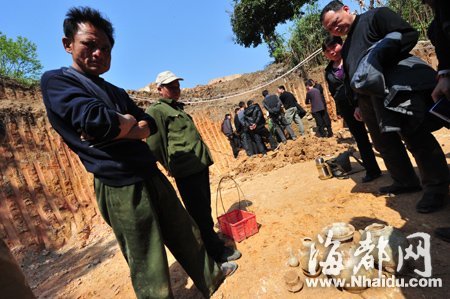 閩侯一村民在拓寬自家后院時(shí),挖出一座古墓,并發(fā)現(xiàn)多件隨葬瓷器,部分趕來(lái)看熱鬧的村民竟哄搶隨葬品。昨日中午,省考古隊(duì)和閩侯縣博物館工作人員趕去保護(hù)現(xiàn)場(chǎng),初步斷定墓葬年代為唐朝,并計(jì)劃進(jìn)行搶救性發(fā)掘。