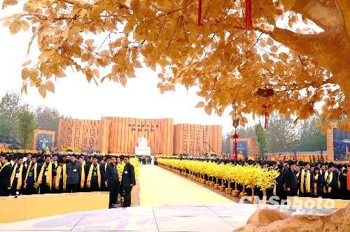 資料圖:2010年4月16日(農(nóng)歷三月初三),庚寅年黃帝故里拜祖大典在河南新鄭市舉行。當(dāng)日,來(lái)自海內(nèi)外的兩萬(wàn)多名嘉賓歡聚于此,共拜軒轅。 中新社發(fā) 劉書亭 攝