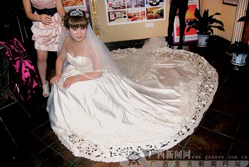 祖籍廣東的彭先生喪妻多年,近年來在北海經(jīng)營一家珍珠公司!皟赡昵,楊小姐答應(yīng)嫁給我之后,我就開始考慮,拿什么來送給我的愛人呢?”早年從事美術(shù)設(shè)計(jì)的彭先生決定,制作一件特殊的婚紗。他提出設(shè)想后,委托香港一名設(shè)計(jì)師進(jìn)行設(shè)計(jì)。