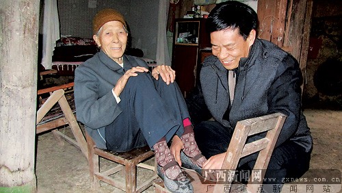 4月6日,記者來到都安瑤族自治縣百旺鄉(xiāng)琳瑯村,被86歲的韋鳳珍和繼子女之間超越血緣的愛所深深感動。22年前,盤愿軍和弟弟妹妹們主動為鰥夫父親搭橋牽線,將繼母娶進家門;6年前,父親去世后,他們一如既往地孝順繼母,在當地傳為美談。
