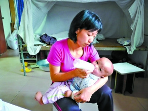 簡陋的出租屋里,歐伍蘭在精心照料著患病的孩子