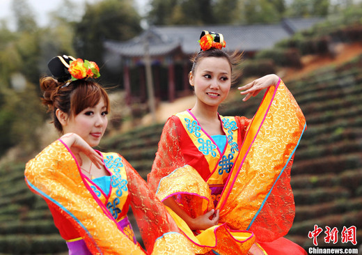 4月16日,河南信陽一公司在萬畝茶園舉行“茶樂會”,茶葉美女們在琴師的古典音樂下衣袂飄飄,宛如天女下凡。日前,該公司發(fā)布招聘采茶女的信息,要求胸圍C罩杯且是處女,該招聘信息發(fā)出后,被網(wǎng)友傳至各大論壇并引發(fā)熱議。中新社發(fā) 王中舉 攝