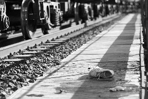 鐵軌旁,一雙白球鞋橫臥在血泊之中。昨天下午3點(diǎn)18分,一名27歲的男子在穿越八里橋鐵道橋時(shí),被火車軋過,送解放軍263醫(yī)院,搶救無效身亡。