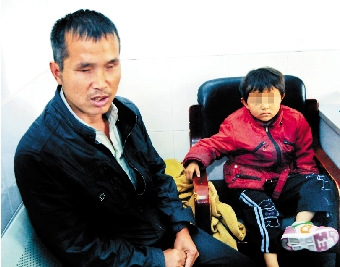 5月2日下午,杭州德勝路眾安浴場西面的人行道上,一個中年盲人拄著一根竹棍站在路邊,他身邊,還依偎著一個五六歲大的小女孩。他們面前放著一只有點掉漆的搪瓷碗,不時有路人往里丟幾個硬幣。