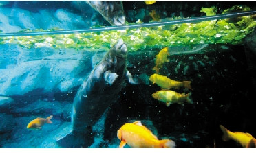 中午,飼養(yǎng)員將剛購進的包心菜,拋撒在海牛池內(nèi)。海牛貪婪地卷起舌頭大聲咀嚼,像卷地毯一樣,才十幾分鐘,浮滿池面的菜就消失了。