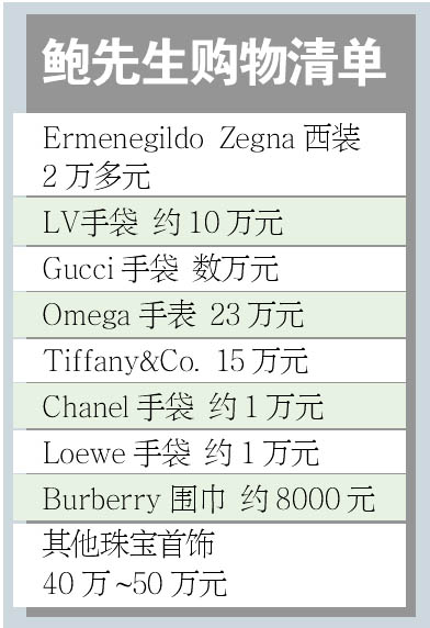 鮑先生透露,自己在“金融界”供職,一家人此次赴港購物的主要原因是兒子剛大學(xué)畢業(yè),準(zhǔn)備今年10月與女友結(jié)婚。正是因?yàn)橛兄棉k結(jié)婚用品的因素在內(nèi),所以購物時(shí)都是挑好的買。一家人特意住在九龍酒店,因?yàn)檫@里距離幾大購物中心和維多利亞港都很近,2天內(nèi)一行人頻繁在尖沙咀和中環(huán)的高檔商場內(nèi)“血拼”,購買了眾多奢侈品,包括LV、Chanel、Gucci、Omega等眾多手袋、名表和珠寶等,兩天在購物上的開銷總額高達(dá)100萬元人民幣。