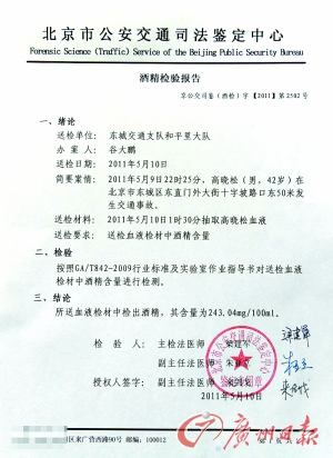 高曉松的酒精檢驗報告。